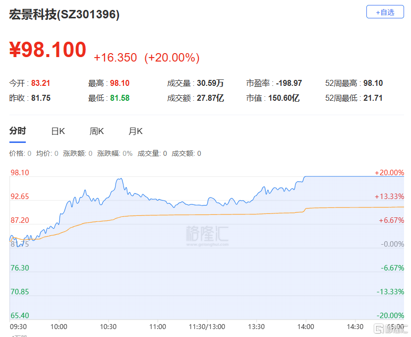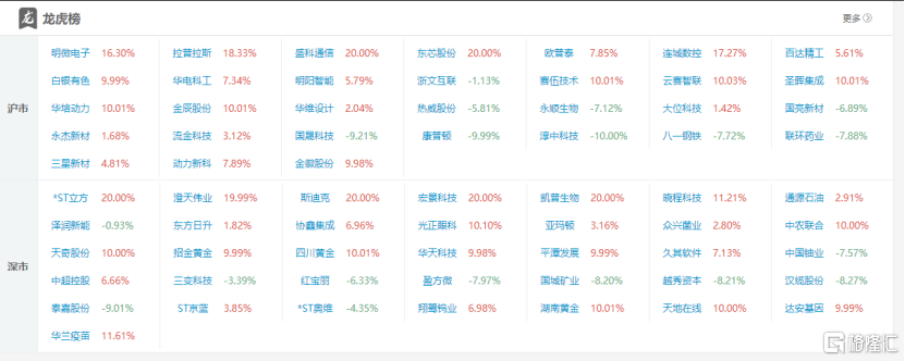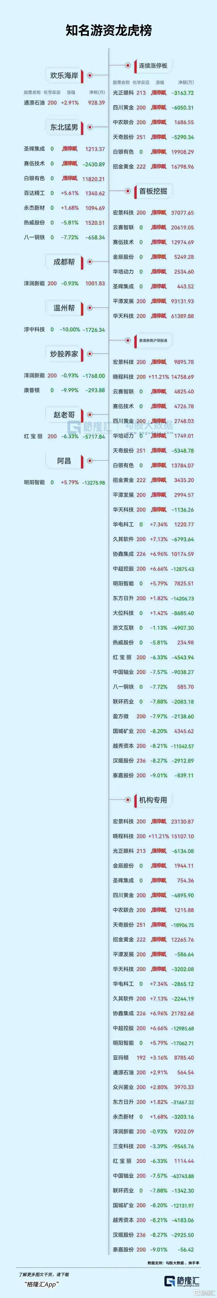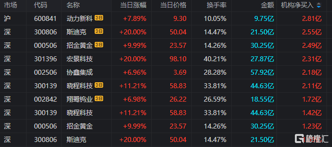 宏景(jing)科技:当日收报98.1元,涨跌幅20.00%,偏离值39.03%,换手(shou)率40.21%,成交额27.87亿。龙虎榜数据显示,机构净买(mai)入(ru)2.31亿元,深(shen)股通专用席位净买(mai)入(ru)9895.80万元,中山东路净买(mai)入(ru)5881万元。