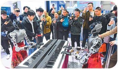 三月十(shi)一日(ri),第三届中国具身智(zhi)能机器人产业大会暨展览会现场,机器人正在演奏。