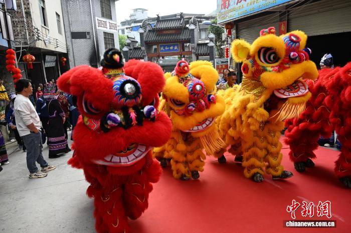 图为民众舞狮闹街。黄数(shu)情 摄