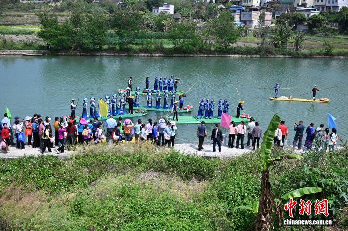 3月18日,阴历正月三十,广西百色(se)市田林县定安镇“销正月”民俗文明流动(dong)准期(qi)而至。当地民众经过跳竹竿舞、打陀螺(luo)、送毽子(zi)、水上表演等(deng)传统民俗形式,欢(huan)庆新春收尾,共祈风调雨顺,吸引(yin)游(you)客前来品尝(chang)壮乡美(mei)食(shi),近间(jian)隔体验传统民俗。“销正月”是当地传统民俗,承载着民众“送走(zou)正月、欢(huan)迎春耕”的朴素愿望。图为民众在河(he)畔送毽子(zi)。黄数(shu)情 摄